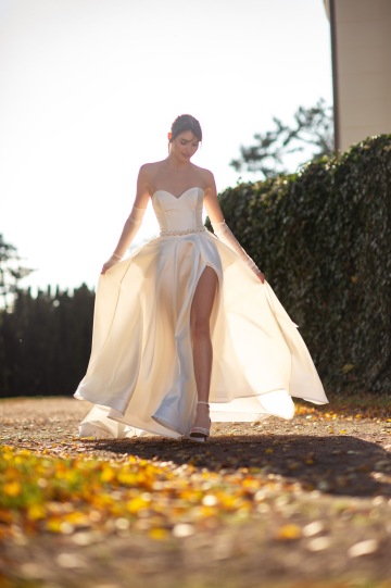 Když se vydáte ke mně do salonu na zkoušení šatů, vezměte si s sebou rovnou boty s podpatkem v takové výšce, jakou plánujete mít na samotné svatbě. Pomůže nám to společně získat okamžitou a naprosto reálnou představu o celkových proporcích a já budu hned přesně vědět, jak moc je potřeba upravit délku šatů, abyste o ně při prvním tanci nezakopávala.