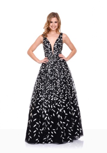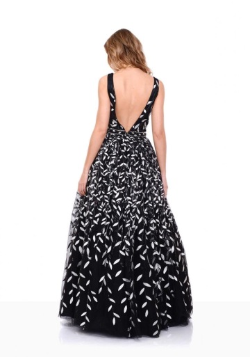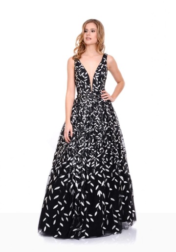 Originální model z kolekce luxusní zn. CHRISTIAN KOEHLERT PARIS. Lze doplnit spodničkou k dosažení efektu bohaté sukně. Krásně třpytivé lístečky z černých pajetek. Pásek zdobený štrasem lze vyměnit za jednobarevný v černé barvě.