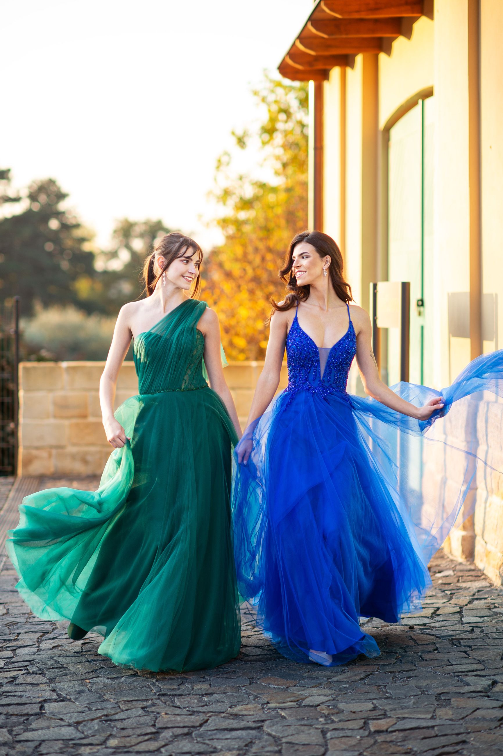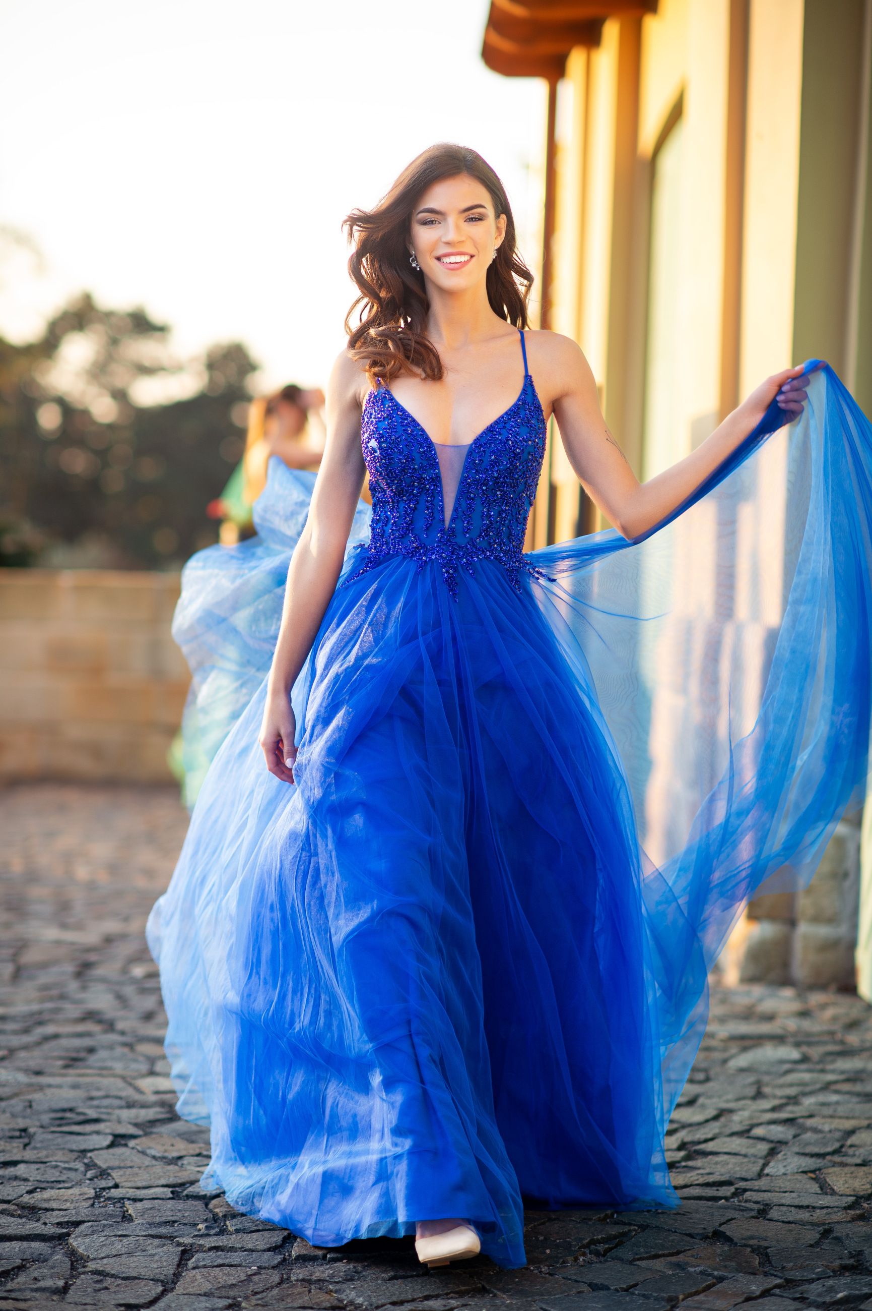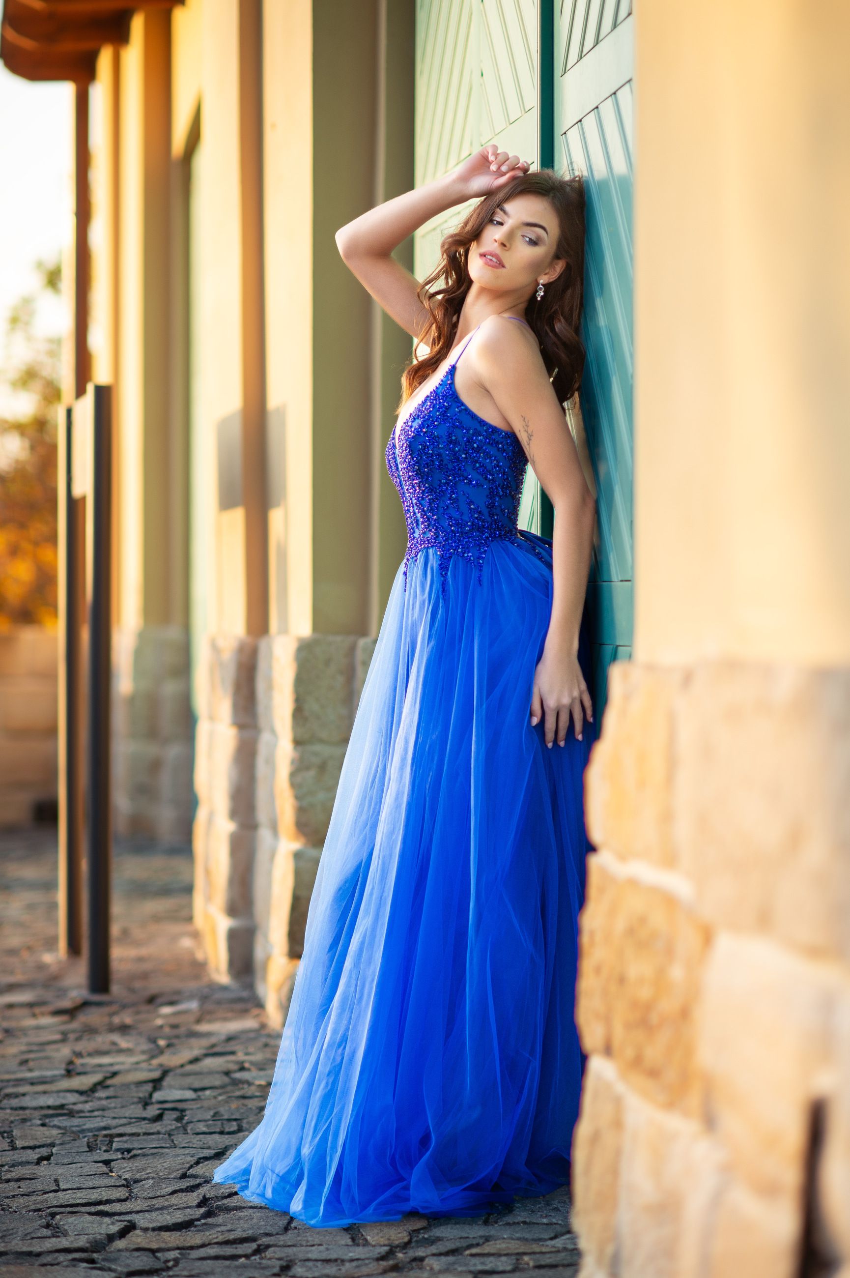 Luxusní společenské šaty ze splývavého tylu. Zajímavě řešené šněrování. Výšivka s korálky, korzet krásně tvaruje postavu.