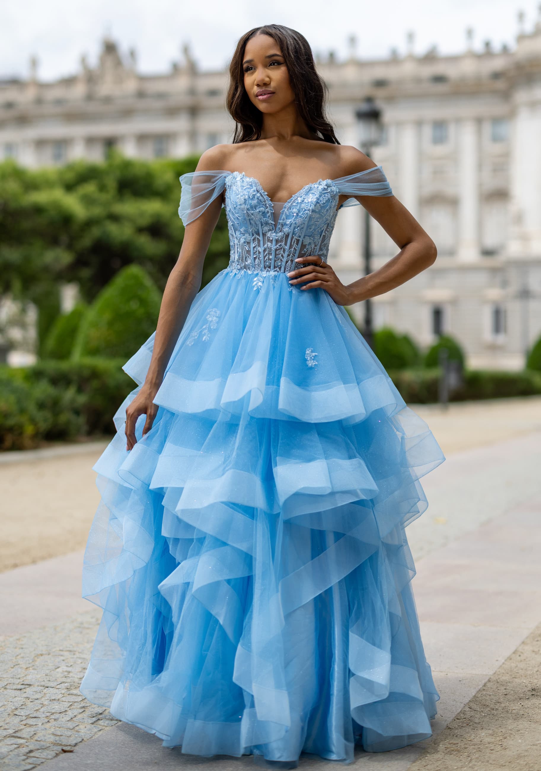Luxusní společenské šaty pro romantické slečny. V těhto šatech budete jako princezna z pohádky. Výšivka s korálky a křišťály, korzet perfektně drží a krásně tvaruje postavu.