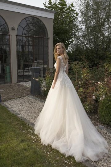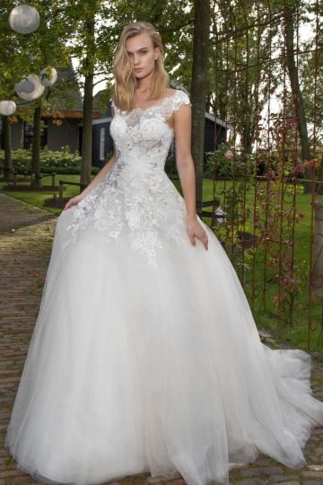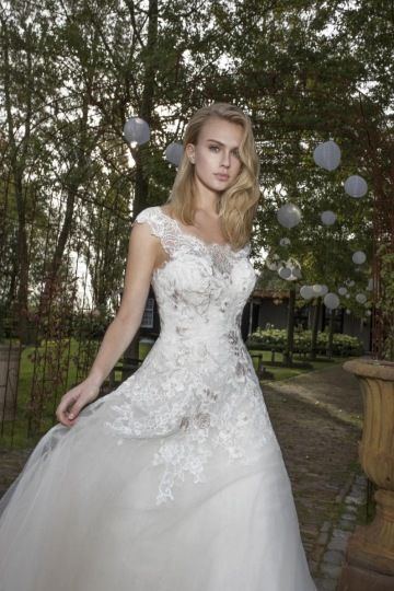 Luxusní model z kolekce prestižní značky Modeca. Jemná krajka a bohatá sukně z jemného, splývavého tylu. Vhodný i pro nevěsty s širšími boky.